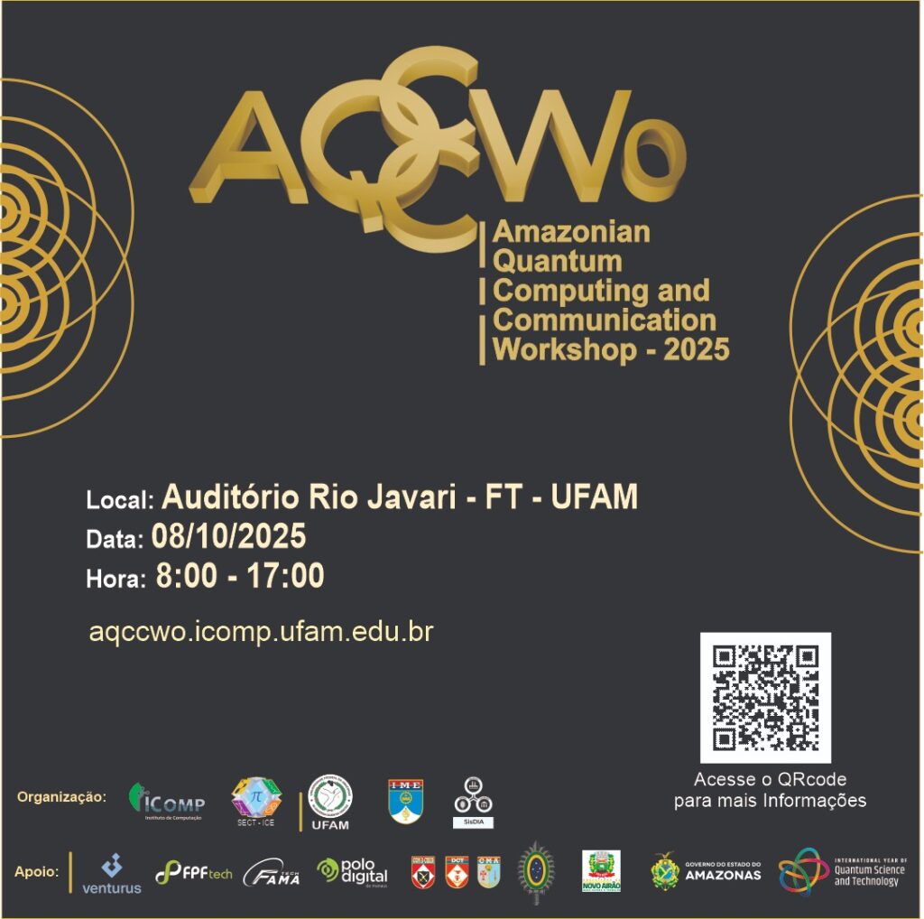In celebration of the UN’s International Year of Quantum Science and Technology (IYQ), and to celebrate research achievements and scientific-technological partnerships, we are holding the Amazonian Quantum Computing and Communication Workshop (AQCCWo) 2025. This workshop will bring together researchers, students, and industry representatives to explore the advances and challenges of quantum technologies, with a focus on quantum computing and communication. The event aims to promote the exchange of ideas, disseminate scientific research results, strengthen collaboration between academia and the productive sector, and discuss strategies for developing innovative solutions that will propel the Amazon region into the global scientific and technological landscape. More than just a space for lectures and debates, this workshop is an opportunity to build bridges, attract new stakeholders, and welcome a community dedicated to transforming the future through quantum science and technology. Promoted by the Quantum Computing and Science and Technology subgroup of the ALGOX Group (Algorithms, Optimization, and Computational Intelligence) of the Federal University of Amazonas’ Institute of Computing (IComp/UFAM), and part of UFAM’s National Science and Technology Week, SECTICE, with the following partners: Military Engineering Institute (IME) and SiSDIA – DCT/EB.
