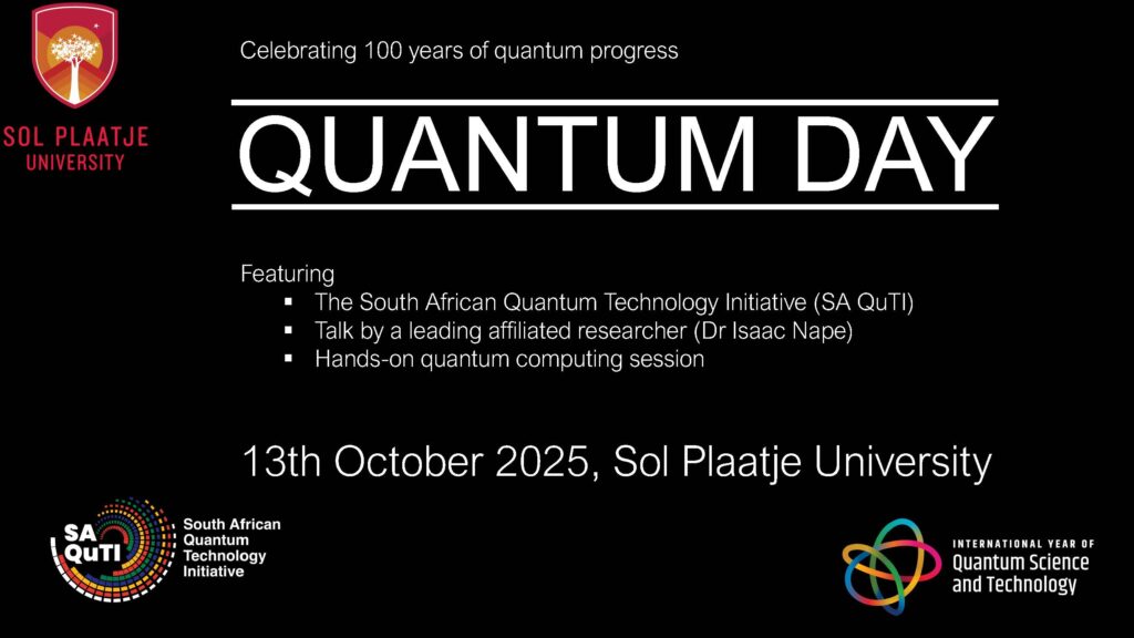 To celebrate IYQ2025, Sol Plaatje University is hosting a Quantum Day on October 13, an outreach event funded by the South African Quantum Technology Initiative (SA QuTI). The focus will be on engaging with students in SPU’s unique undergraduate Data Science programme (headed by Dr Alfred Mwanza).