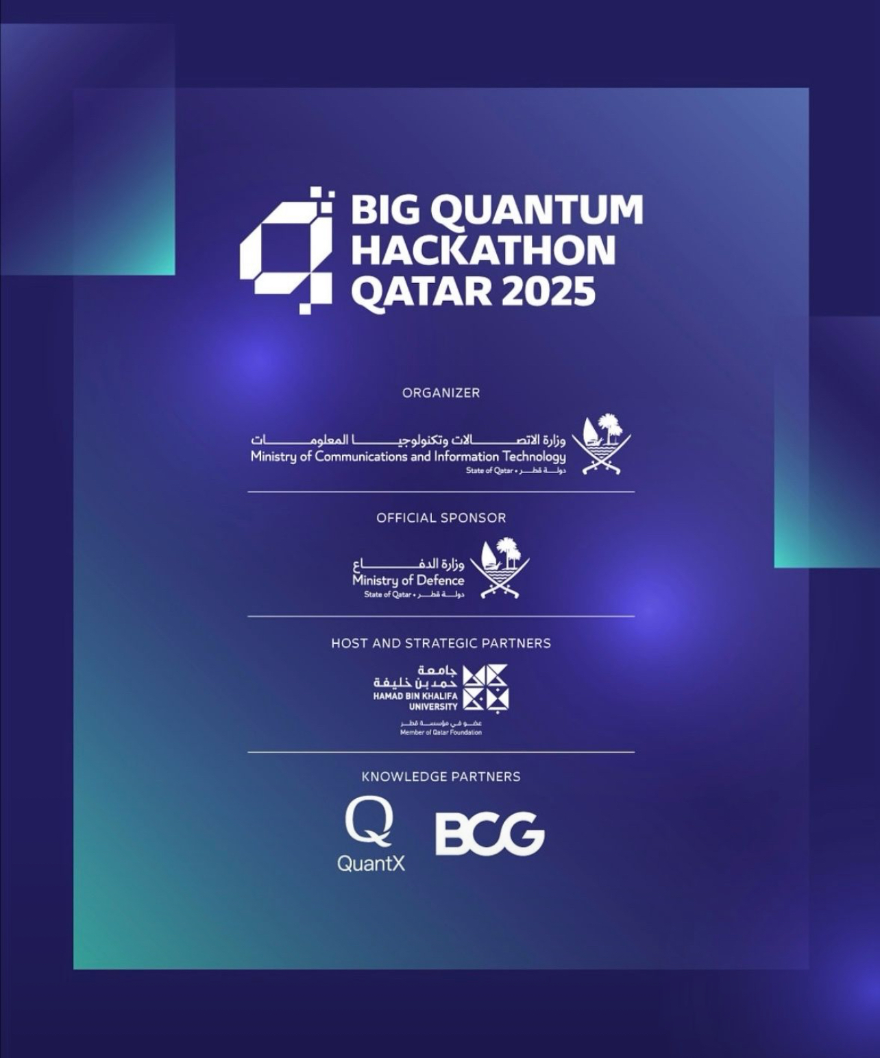 Organized by the Ministry of Communications and Information Technology (MCIT), the Ministry of Defense (MOD), Hamad Bin Khalifa University (HBKU), Boston Consulting Group (BCG), and the QuantX association.