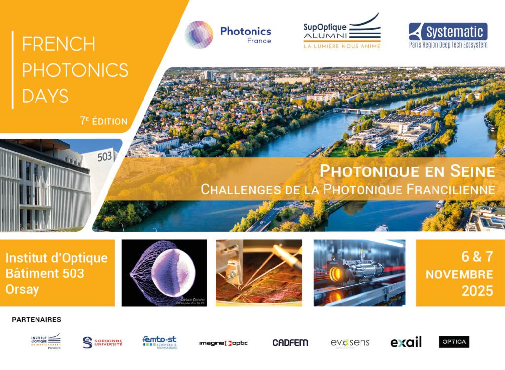 Photonics France, SupOptique Alumni, and Systematic Paris-Region invite you to join them on 6 and 7 November in Orsay for the seventh edition of French Photonics Days, with the support of Institut d’Optique Graduate School and Sorbonne University.