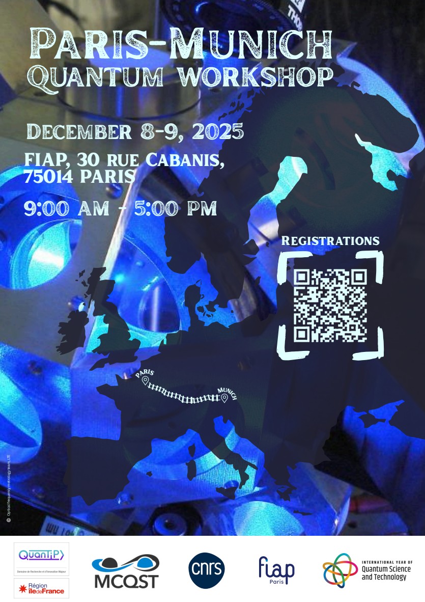 The Paris-Munich Quantum Workshop takes place in Paris, France, on December 8 and 9, 2025. The workshop brings together researchers from two quantum hubs, the Paris region and Munich.