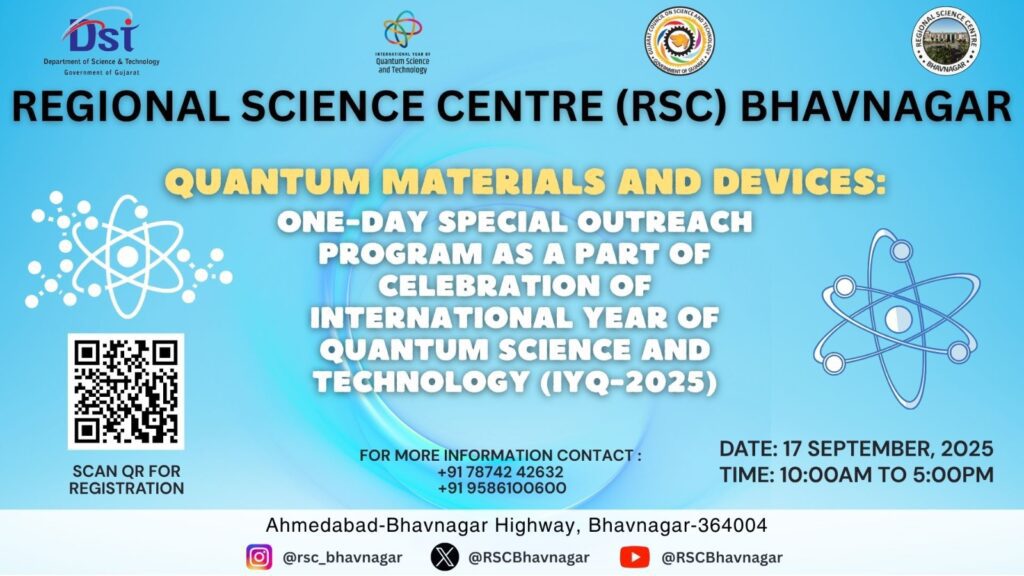 GUJCOST has curated a dynamic series of programs and outreach initiatives aimed at bringing quantum science and technology closer to students, schools, and STEM institutions across Gujarat, inspiring young minds and nurturing a future-ready scientific community at the Regional Science Centre, Bhavnagar. The program is slated to inspire the next generation of learners in the emerging field of quantum materials and devices, which aligns with the key verticals set by NQM.
