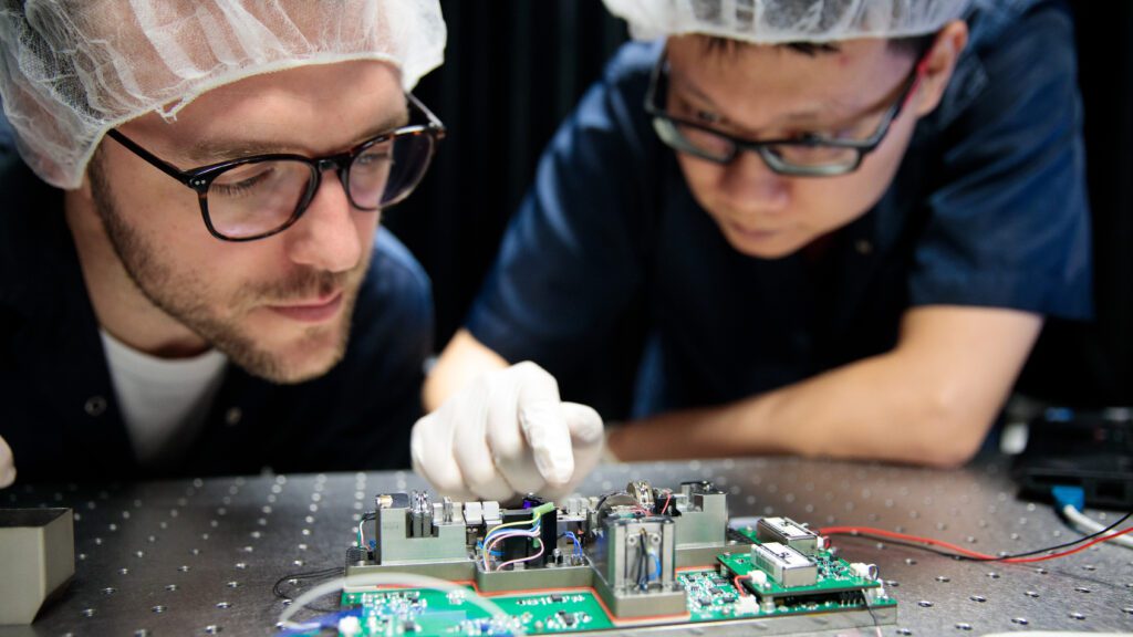 These roles encompass a huge diversity. There are deeply technical and hands-on engineering jobs like Villar’s, but also software, business, and community positions. Take the roughly 100 students who have graduated from the PhD programme at CQT since 2007 as a sample: they have found a whole universe of opportunities.