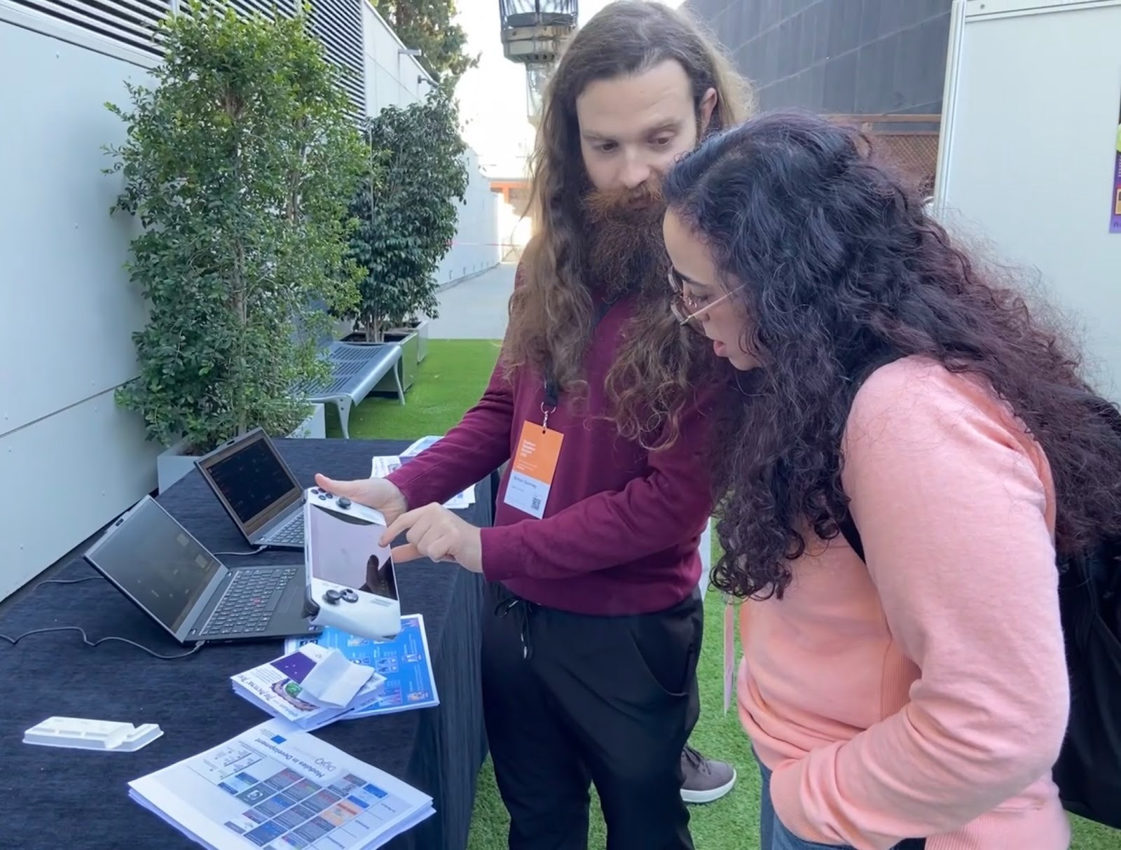 The highlights from across the conference would have to include the showcase of tangibles. You couldn’t miss John Donahue’s suitcase full of easy-to-make quantum experiments for high school students—a senior scientific outreach manager at the Institute for Quantum Computing in Waterloo, Canada. John Donahue showed what quantum experiments for students are possible. From Palo Alto, California, and founder of Qolour, Sohum Thakkar’s colorful, handheld Qubis became an iconic symbol of what hands-on experimentation could really mean. Even inside the classroom, educators have taken game play seriously: Bjarke Takashi Røjle Christensen from the NNF Quantum Computing Programme and Copenhagen, Denmark, showed us how he uses light and optical fibers to transform his quantum physics class into a spy mission.